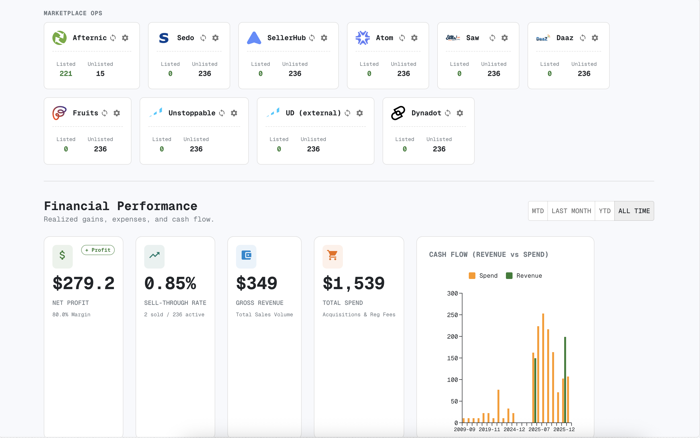 Track floor, BIN, wholesale pricing, status, and intent. Real database fields, not spreadsheet hacks.