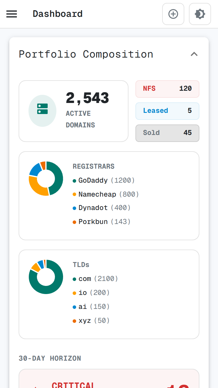 Expiry visibility that doesn’t live hidden inside registrar tabs. Never miss a drop due to bad UI.